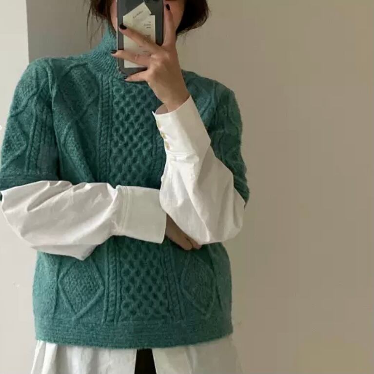 ざっくりとしたやわらかローゲージケーブルとハーフスリーブでコーデが広がる1枚