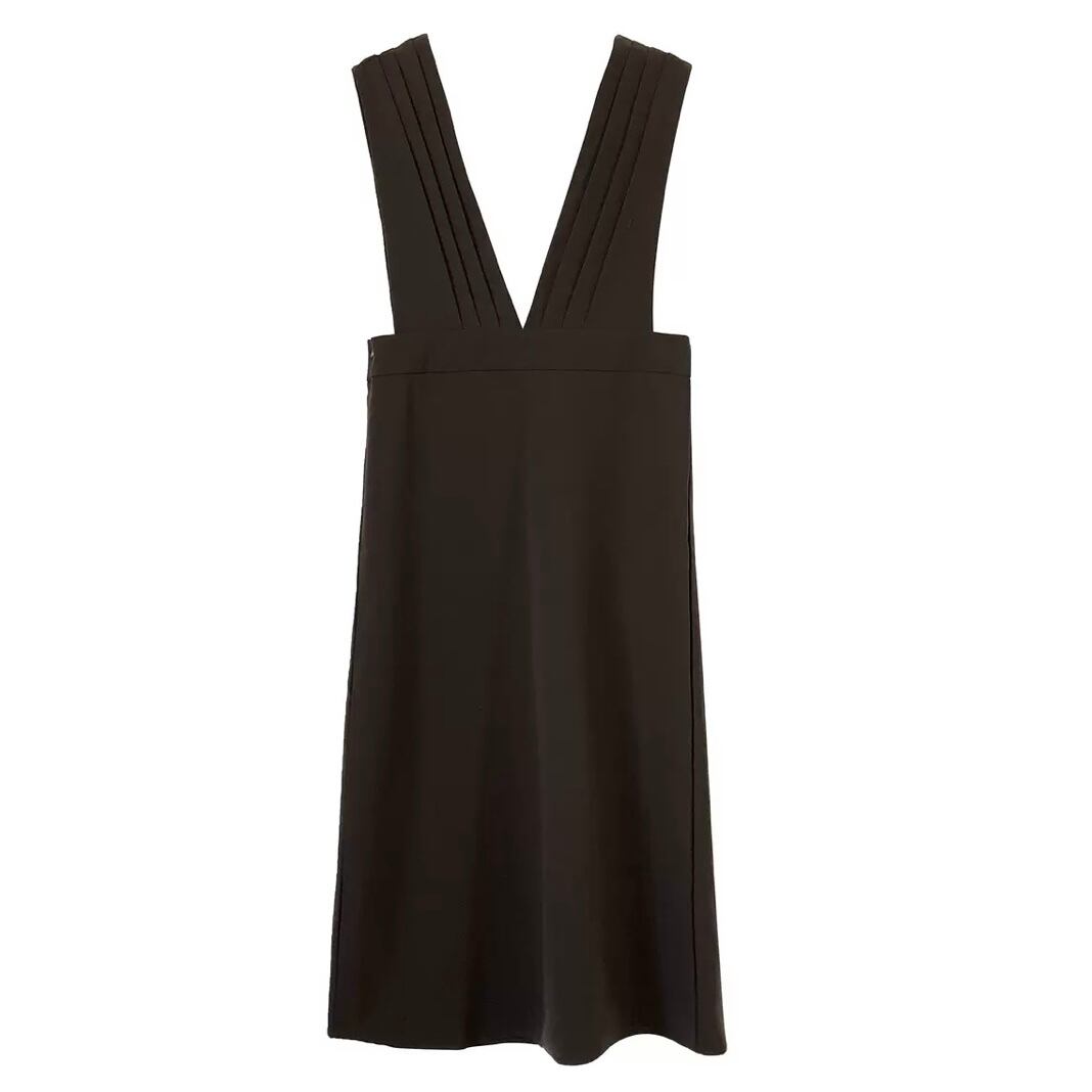 深めに入ったVネックとウエストマークが大人女性らしいスタイリングを叶えます