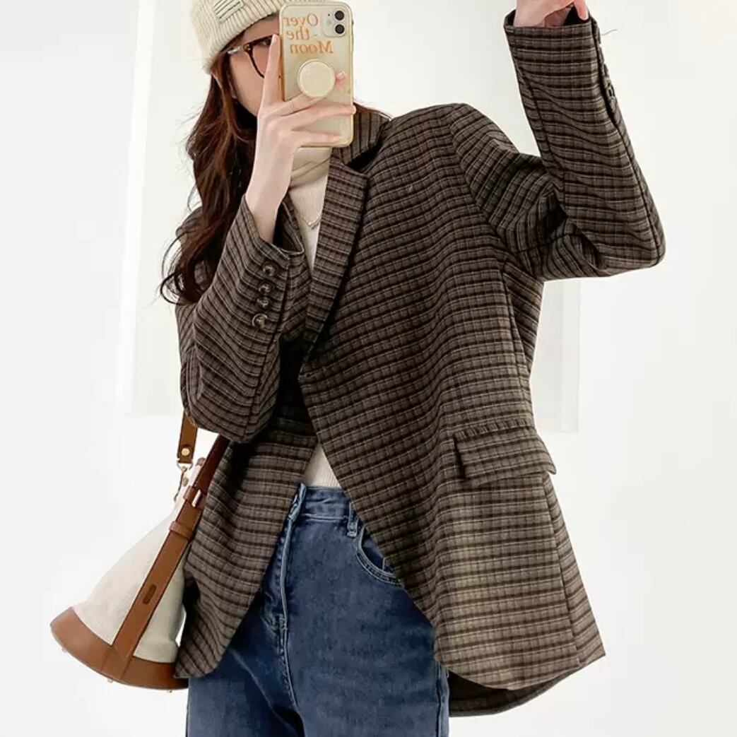シックな色味のチェックが洒落感アップのポイントです◎