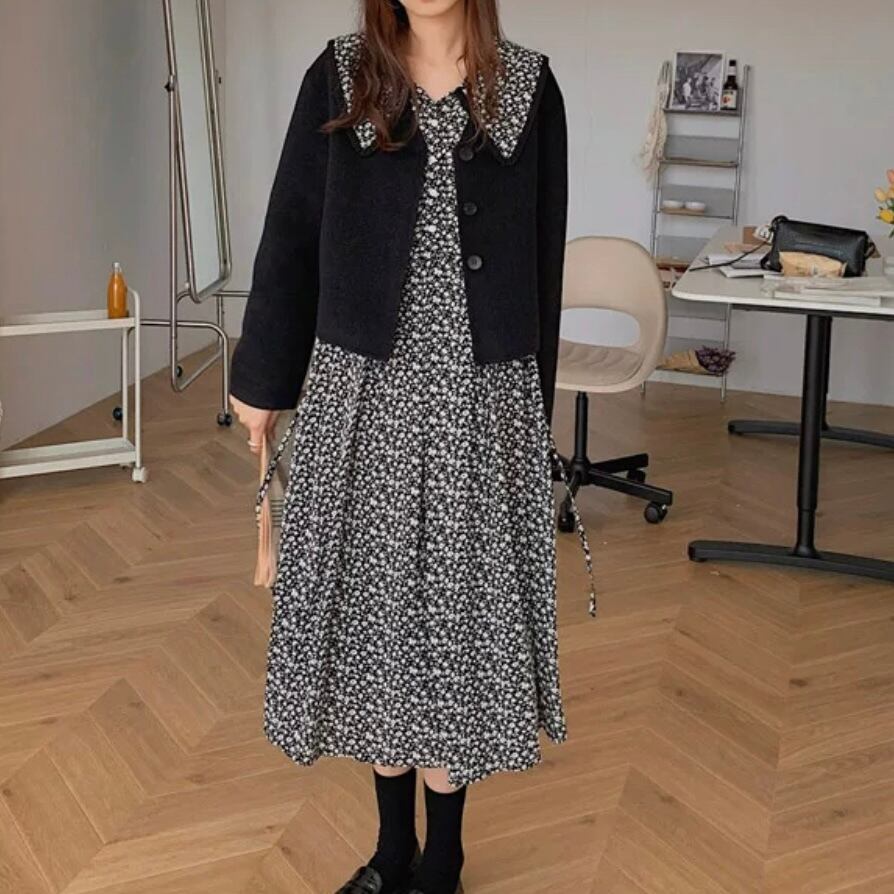トレンド感ある大きな襟と程よいフレアなプリーツ感が可愛らしいアイテム。
