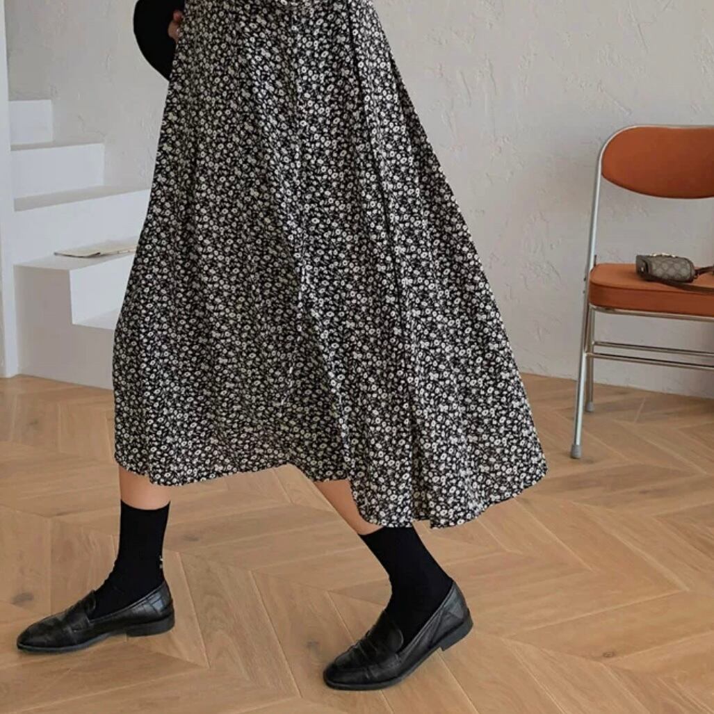 プリーツのスカートは1枚では可愛らしい印象になるのはもちろん、全体的に縦長になりがちなレイヤードスタイルではふわっと動きを作ってくれます。