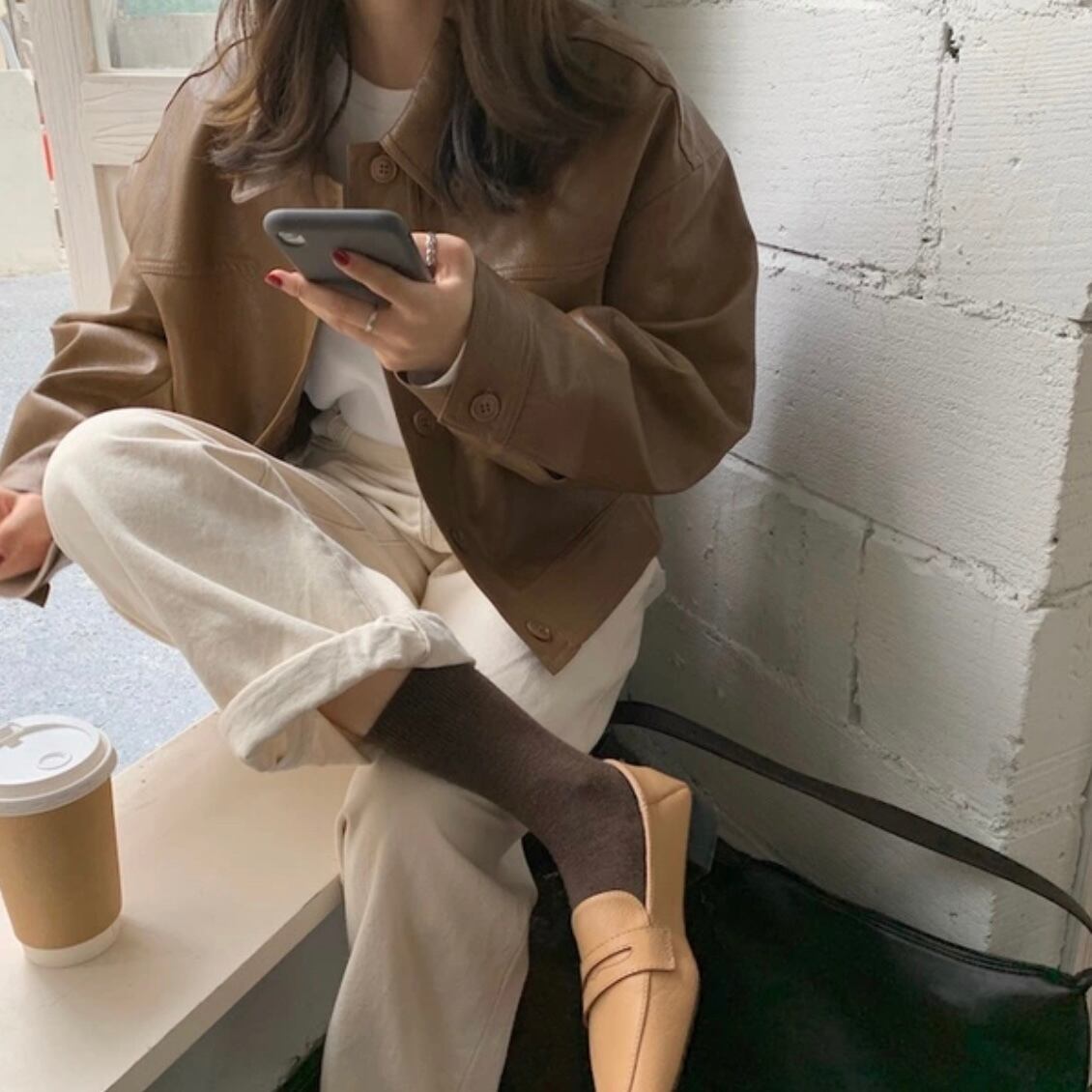 今季注目のトレンドアイテム!フェイクレザーのアウターはショート丈ながらも