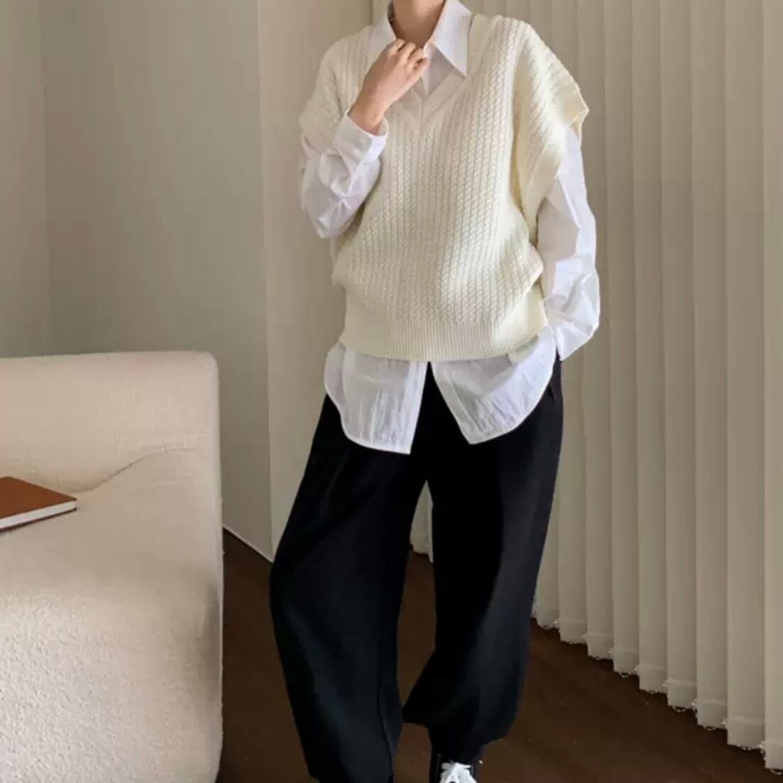 トレンド性のあるニットベストは、シャツやブラウスなどとのレイヤードスタイルでこなれた印象に仕上がります。