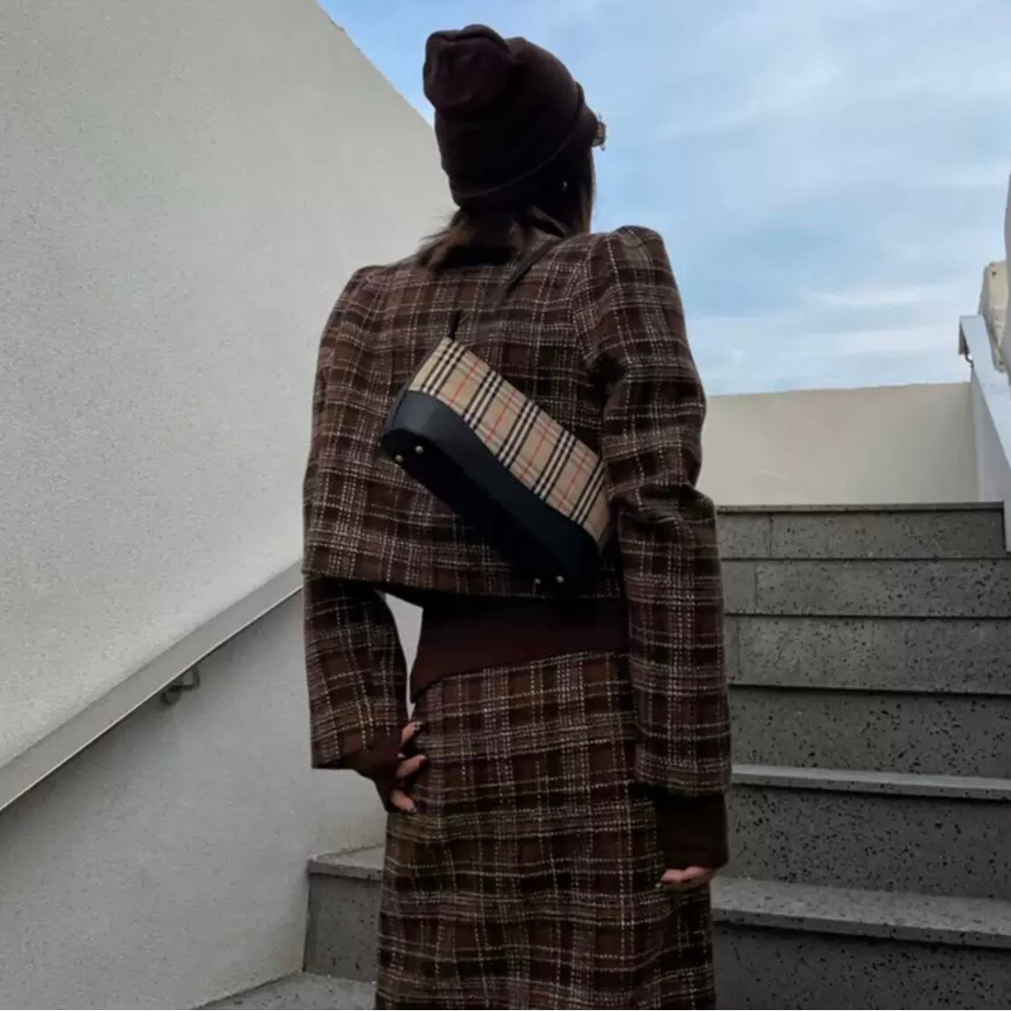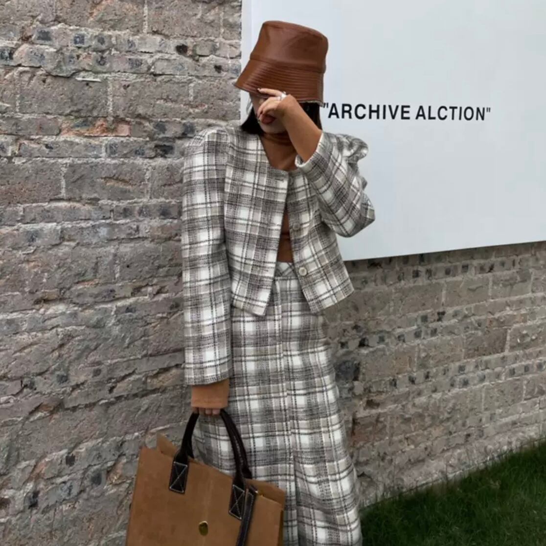 季節感がぐっと高まるウールライクな質感で、あたたかみのあるレトロなチェック柄。