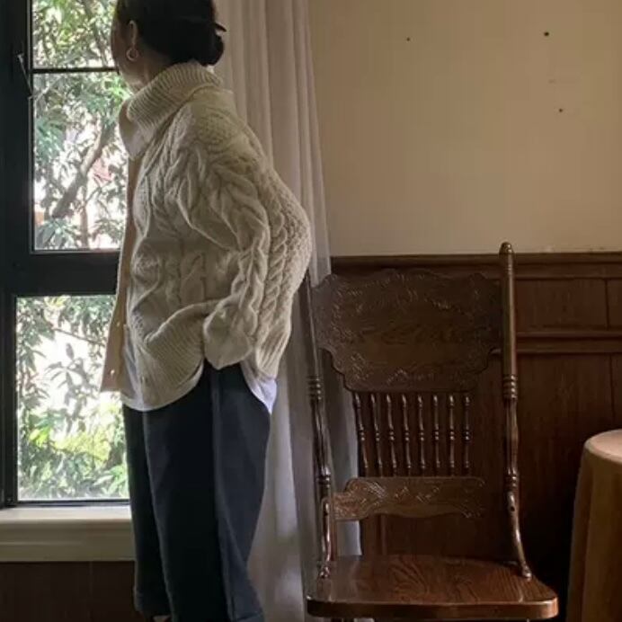 柔らかなケーブル編みのニットカーディガン。