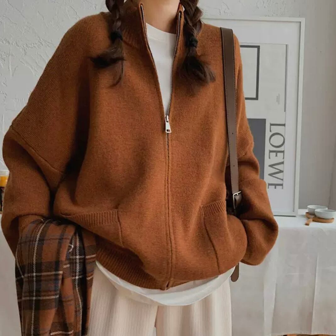 上まで閉じてタートルネック風に、と様々な着こなしを楽しめます。