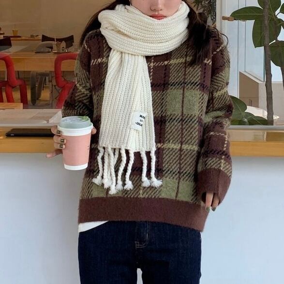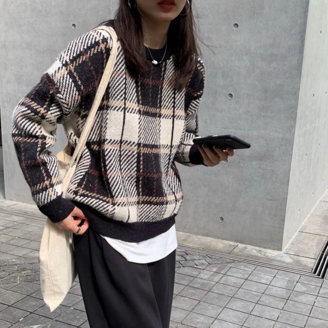 オーバーチェック柄に配色ラインのリブがアクセント◎
