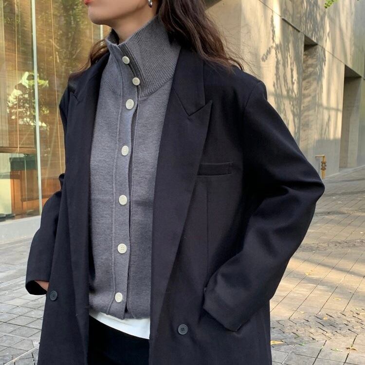 ボタンの開閉でプルオーバー風に着こなしたり、襟元の印象も替えられるので、一枚で何通りもコーディネートが楽しめます♪