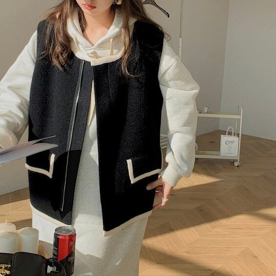 トレンドのレイヤードスタイルにぴったりなニットベスト。