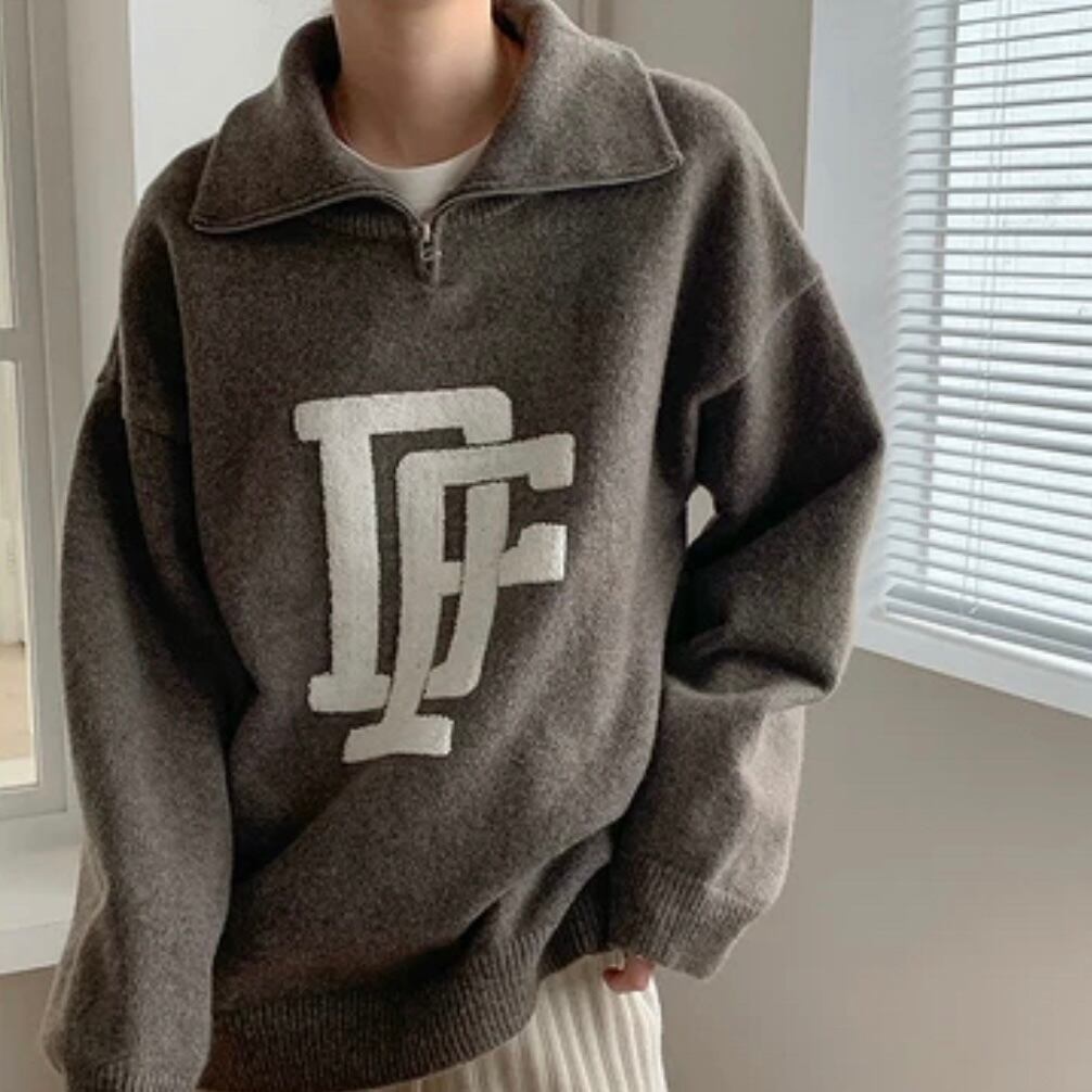 トレンドのハーフジップのニット。