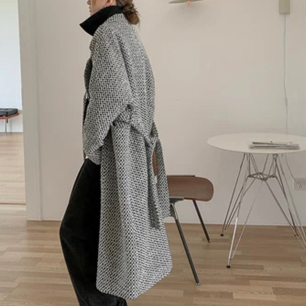ウエストのベルトを絞ってスッキリとした着こなしもできます。