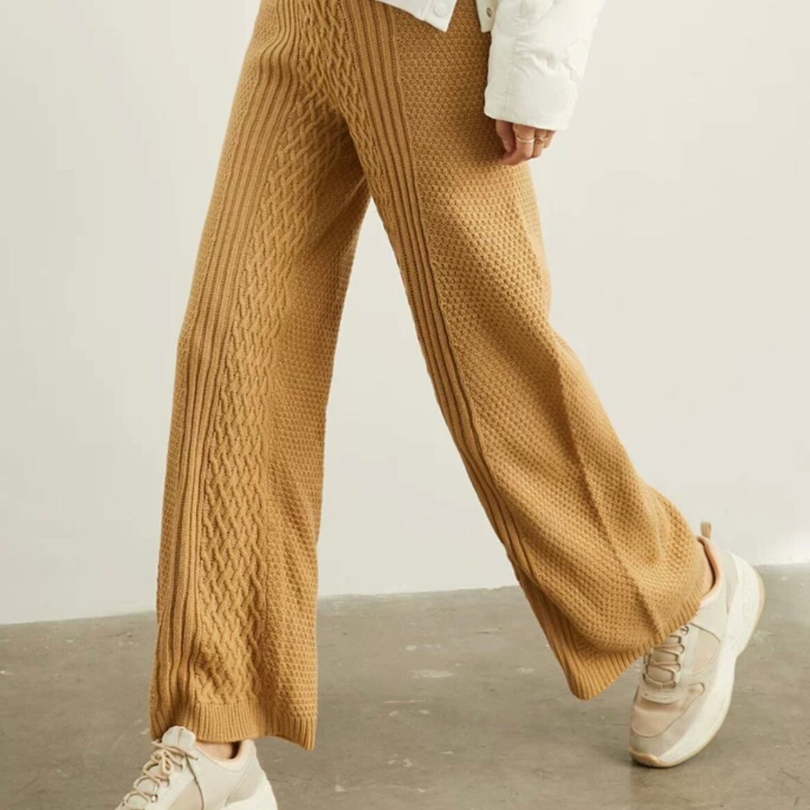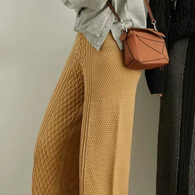 大人のリラックスコーデにぴったりな、お洒落なケーブル編みニットパンツです。