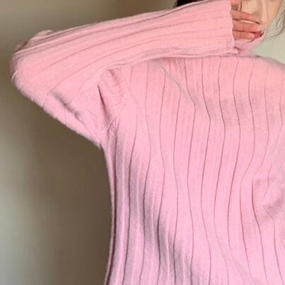 シンプルなデザインながらもワイドなリブ編みがお洒落さの際立つ1枚。