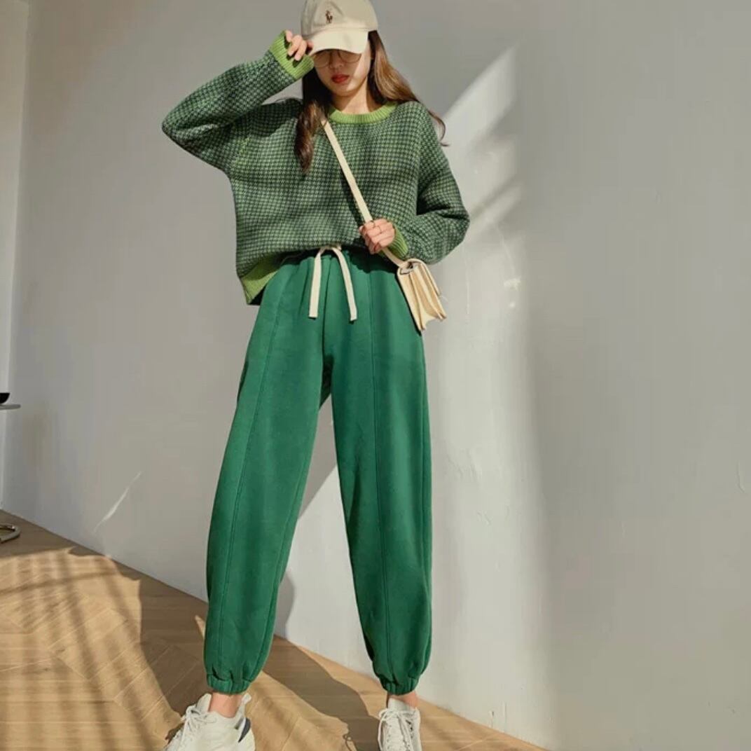 小さな千鳥柄が印象的で可愛い配色ニットプルオーバー。