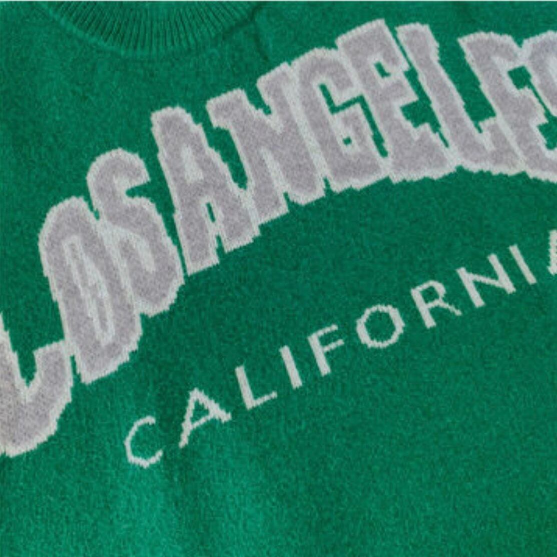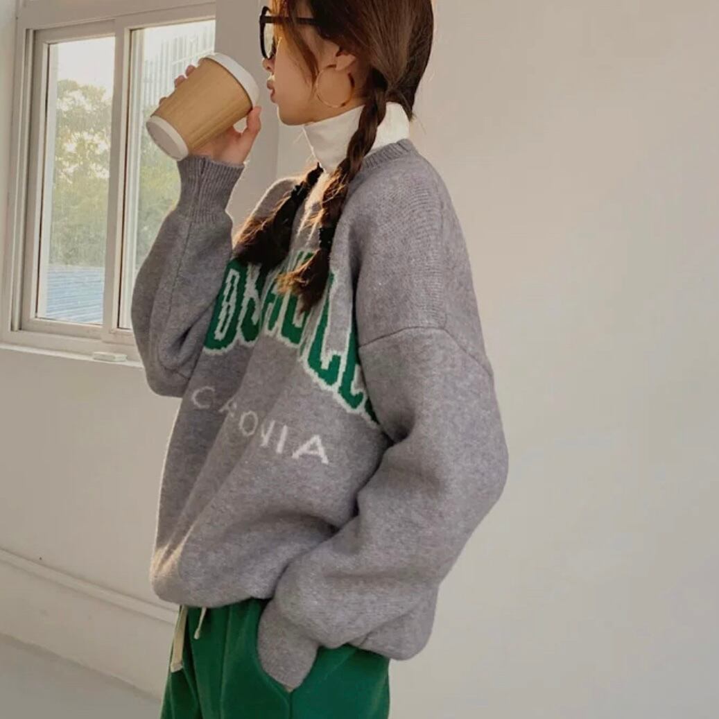ロゴスウェットのような雰囲気で着られるオーバーサイズニット