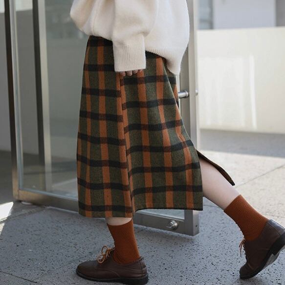 スタイリングを格上げしてくれるバックスリットチェック柄スカート。
