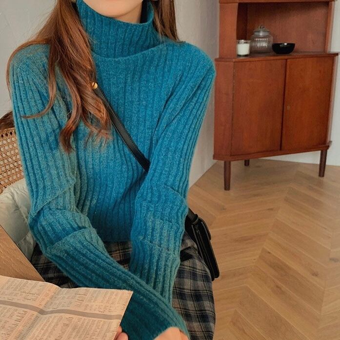 リブハイネックで上品に仕上げたプルオーバー。ウールカシミヤのふんわりとしたあたたかな着心地の良さがポイント♪