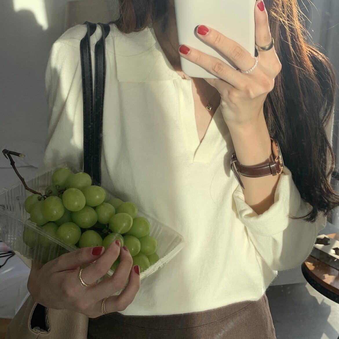 首元のポロシャツ風デザインが大人カジュアルに仕上げてくれるニットトップスです。