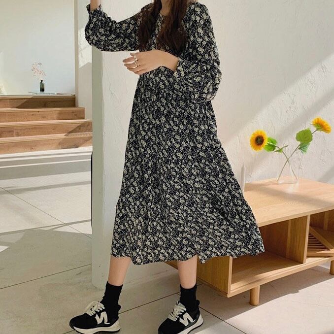 フラワープリントが目を惹く、大人レトロワンピース。
