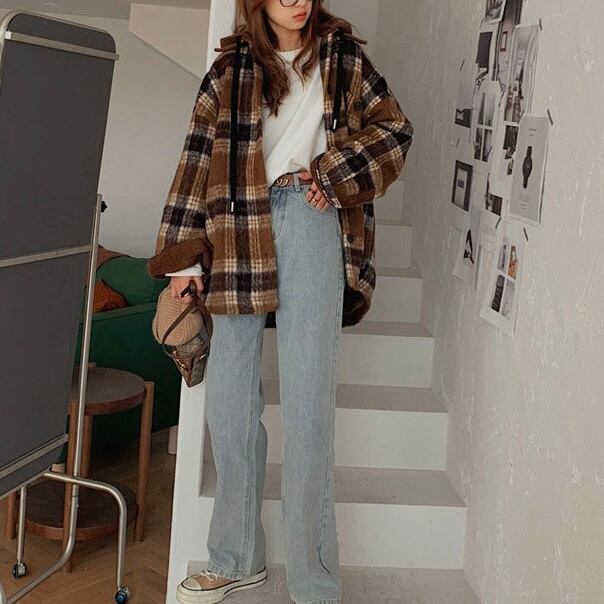 トレンド感あふれるビッグシルエットのチェック柄CPOジャケット。