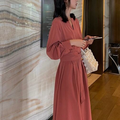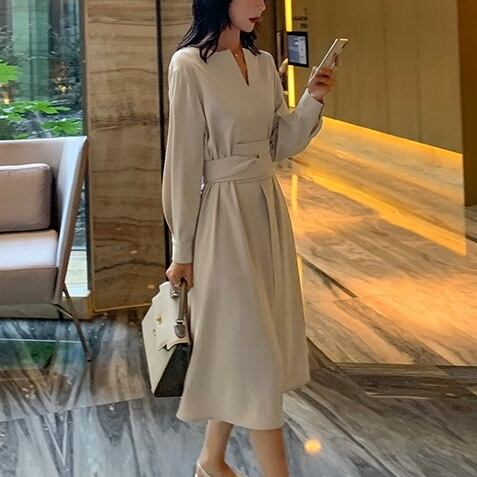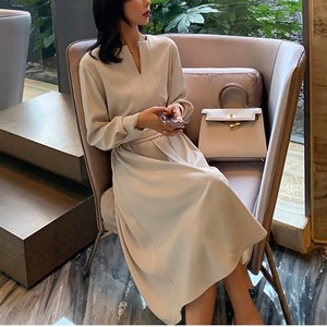 裾にかけて緩やかなフレアラインが上品なワンピース。