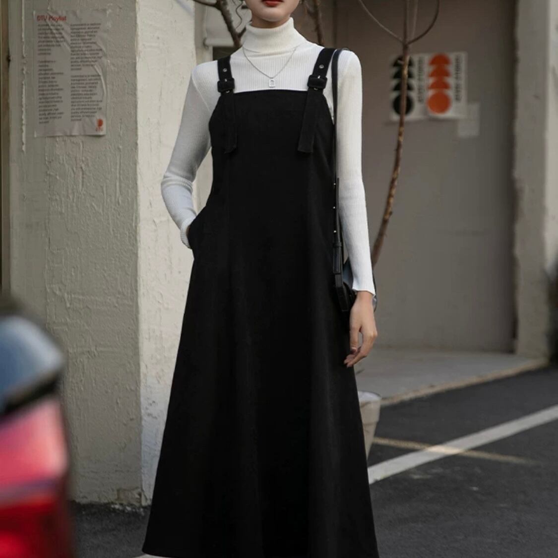 身体のラインに程よくフィットし女性らしいシルエットを演出してくれるジャンパースカート。