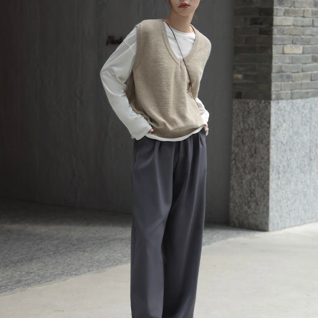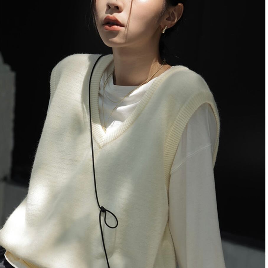 レイヤードスタイルを楽しめるトレンド顔のニットベスト。