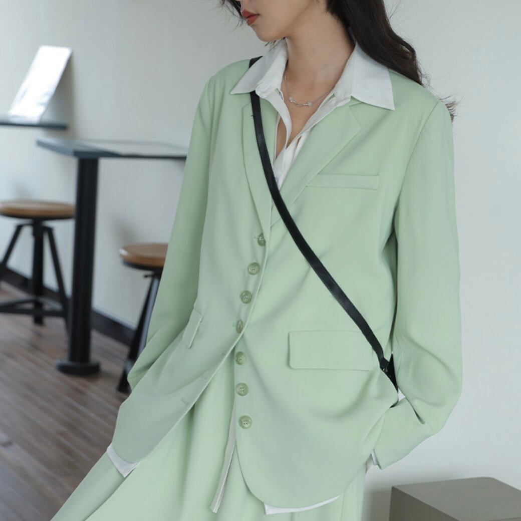 ジャケットのボタン使いやスカートのサイドスリットなど、
