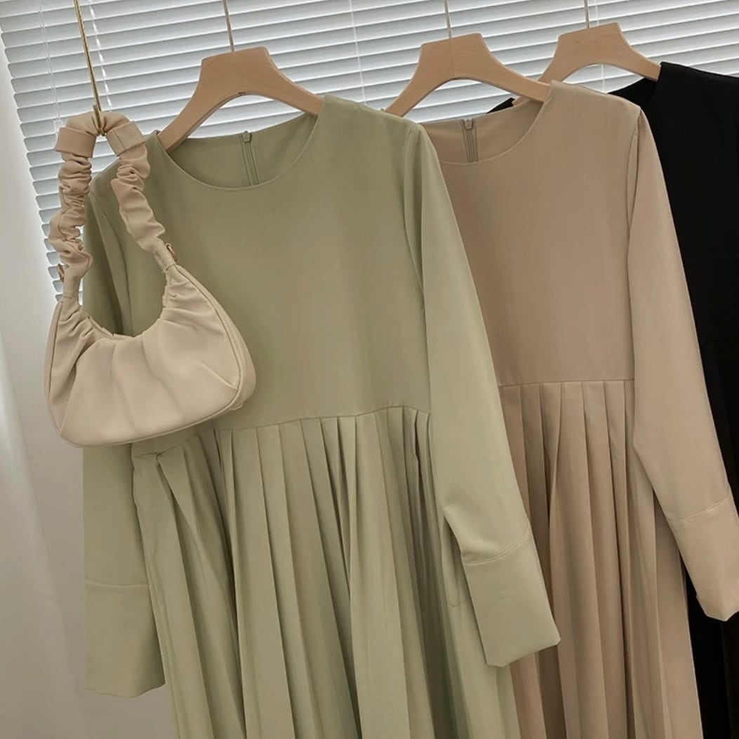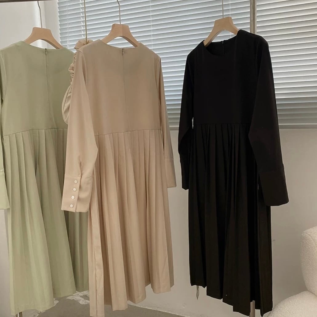 女性らしいニュアンス感が魅力のプリーツワンピース。