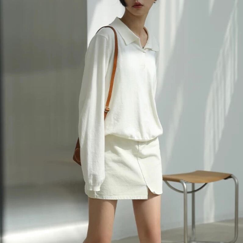 定番のハイゲージニットに襟のついたデザインがコーディネートにアクセントをプラス◎