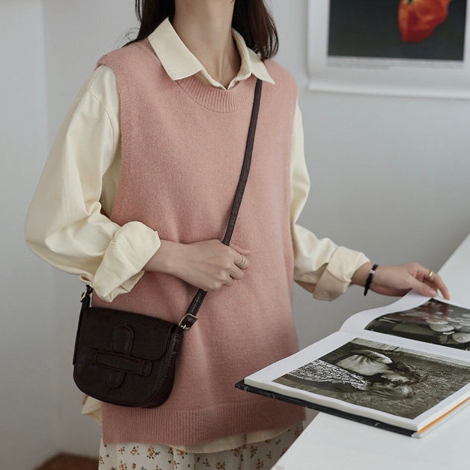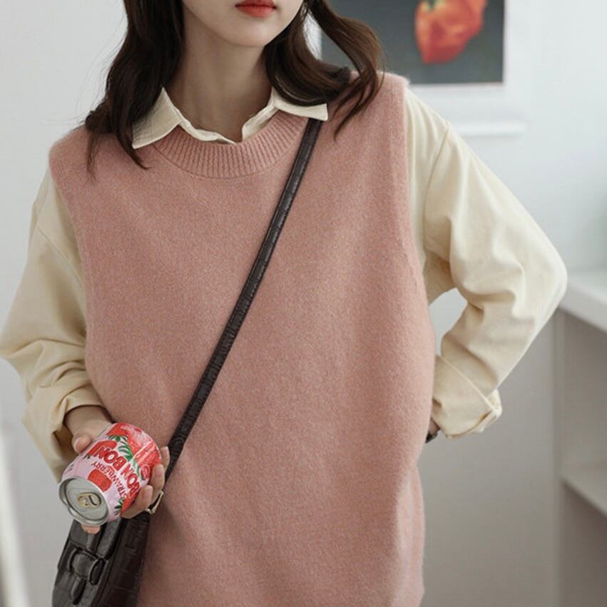 サイドにスリットを入れて、こなれた印象のニットベスト。