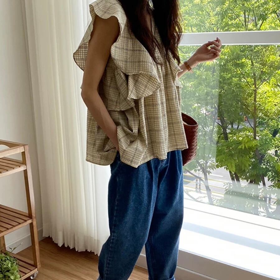 トレンド感あふれるフリルディティールが魅力のブラウス。