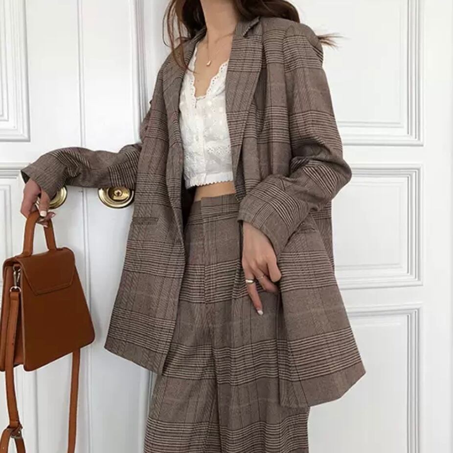 同素材のジャケット(ショルダースリットチェックジャケット:A1368)とのセットアップがオススメです♪