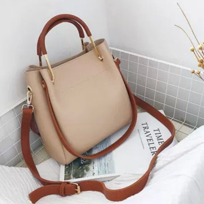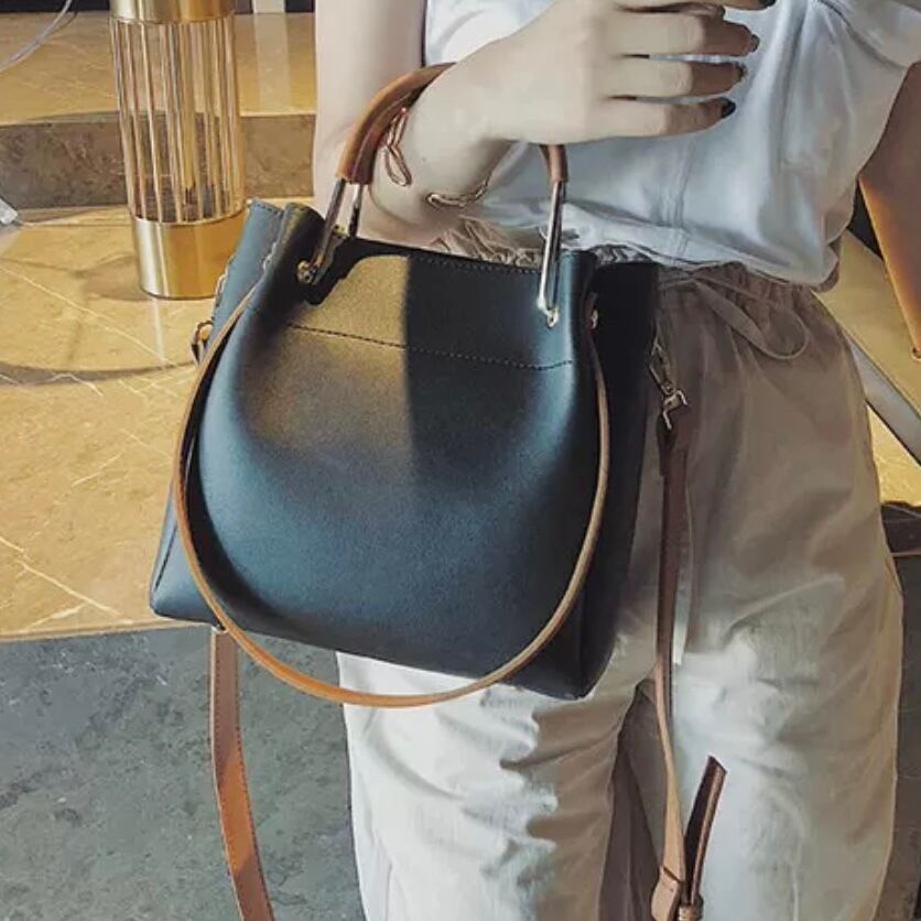 きちんと感を演出するスクエアフォルムとシックなバイカラーでまとめた2wayミニハンドバッグ。