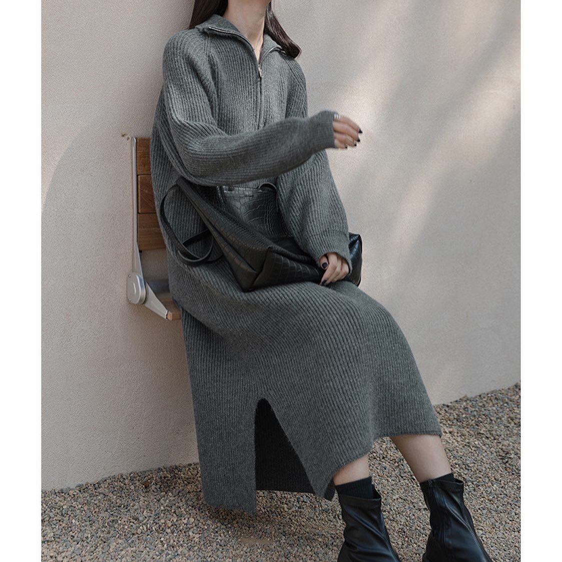 1枚で簡単にトレンドライクなスタイリングが完成するハーフジップワンピース。