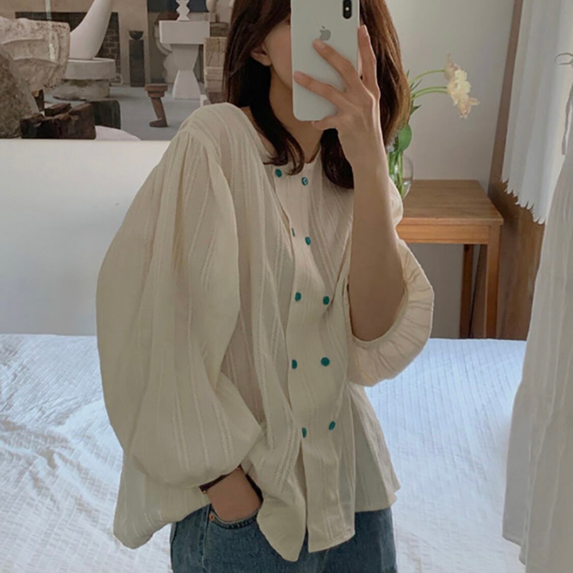 大人可愛いディティールが詰まったダブル釦ブラウス。