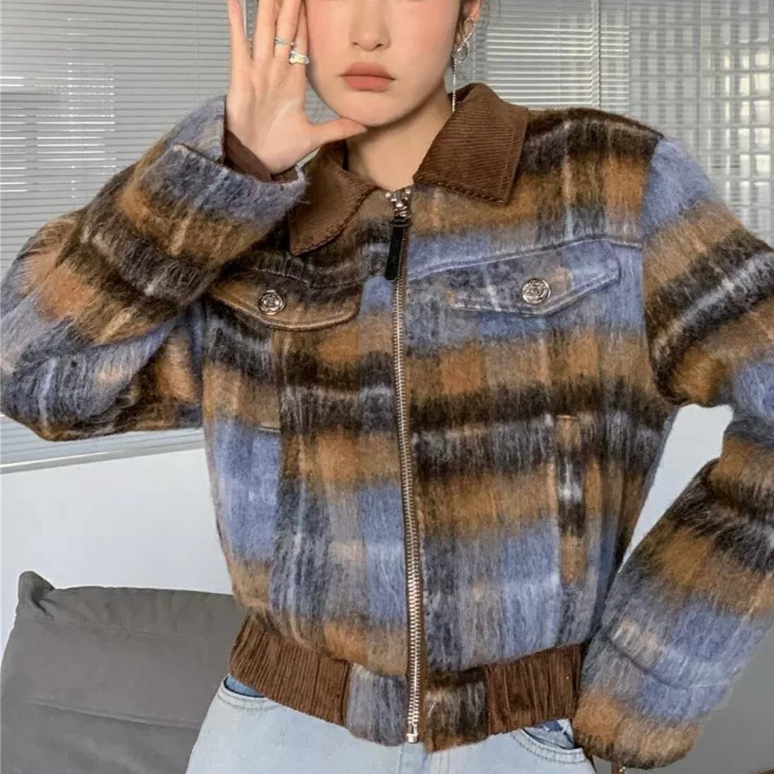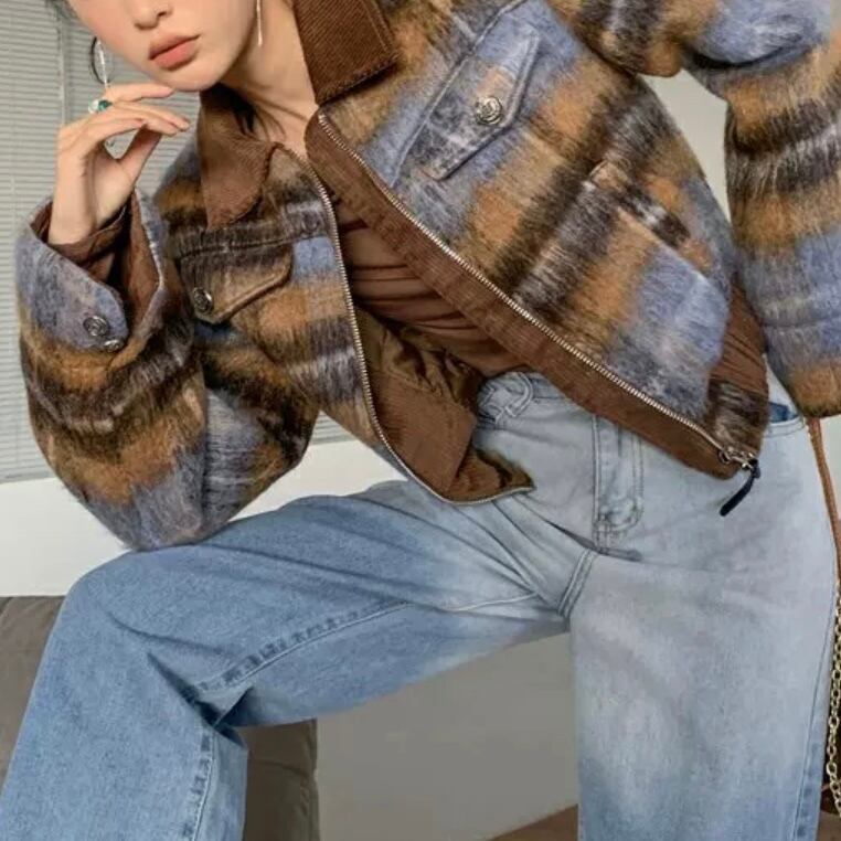 レトロな雰囲気が可愛いシャギーチェックジャケット。