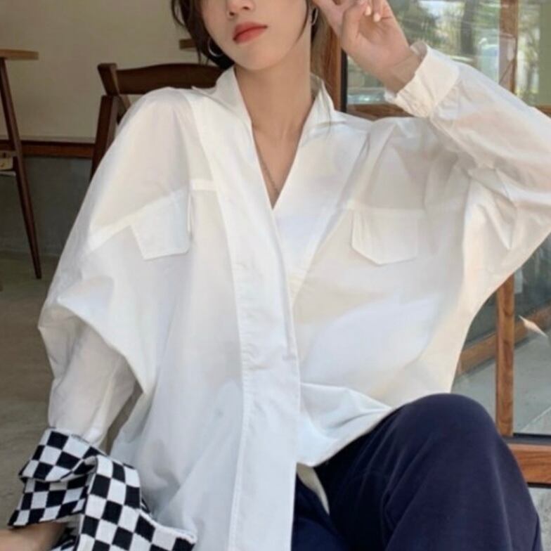ラフな抜け感を演出してくれる合わせVネックのシャツ。