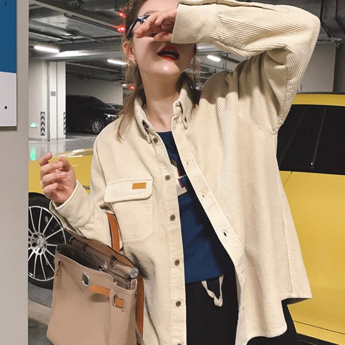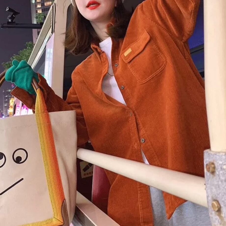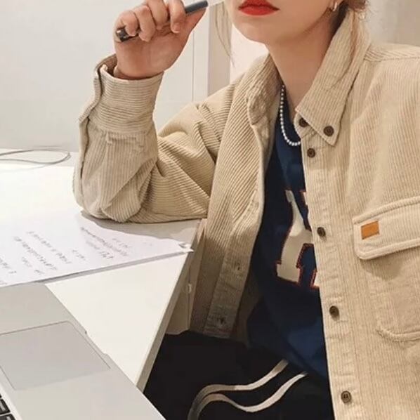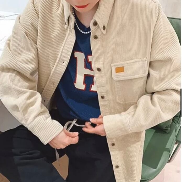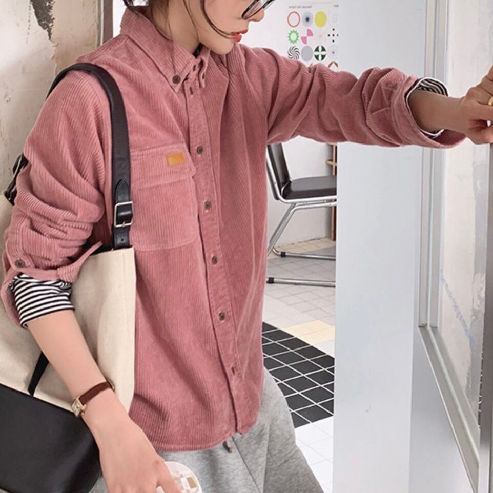 コーデュロイ生地を使用した温かみのある表情のシャツ。