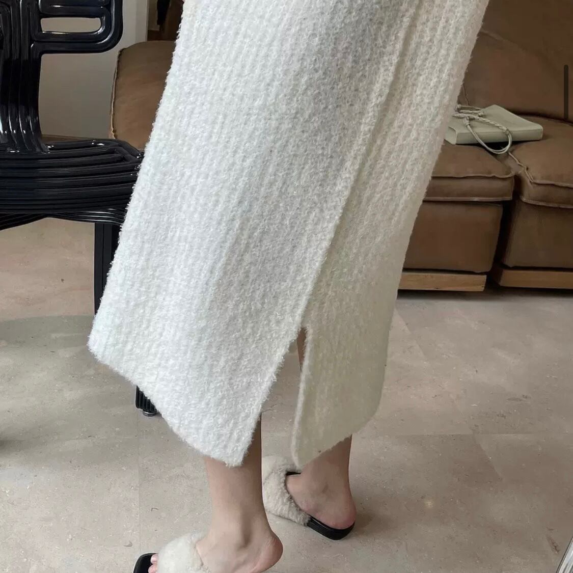 トレンドライクなサイドスリットは歩きやすさももちろん、ボトムとレイヤードした着こなしもおすすめです。