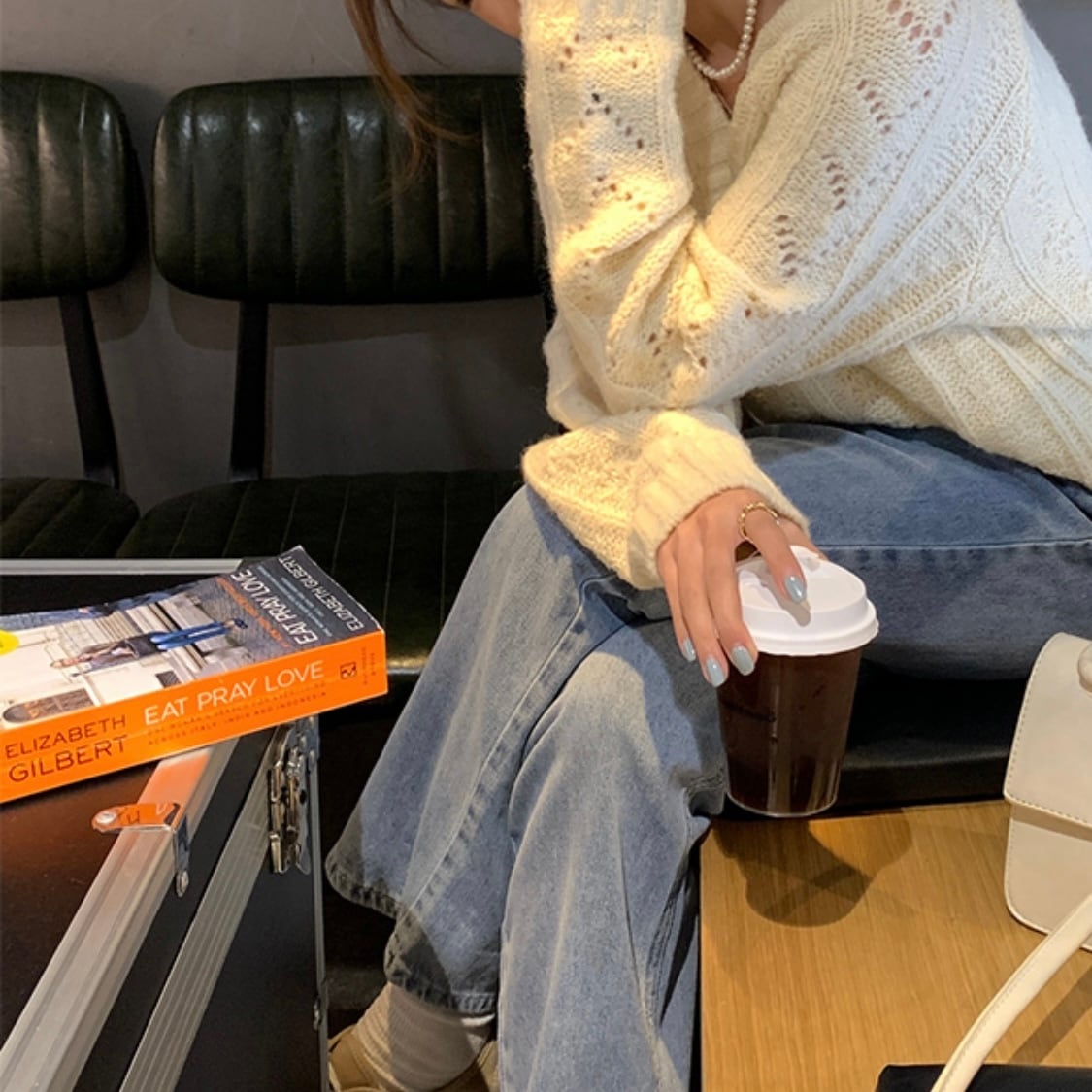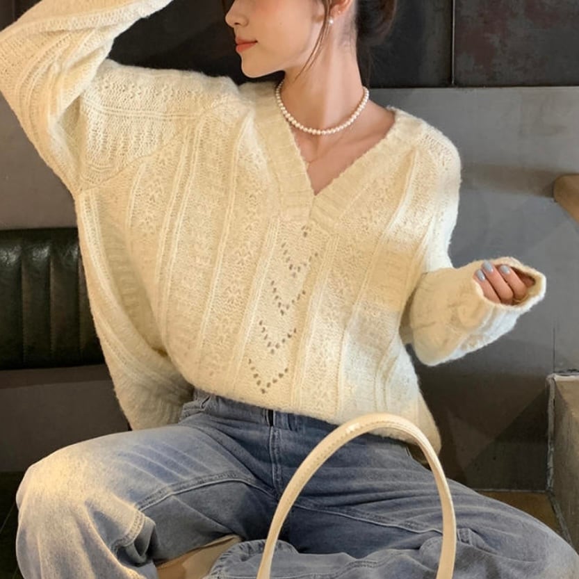 ゆるっと着られるオーバーサイズがこなれ感を演出してくれる透かし編み風ニット。