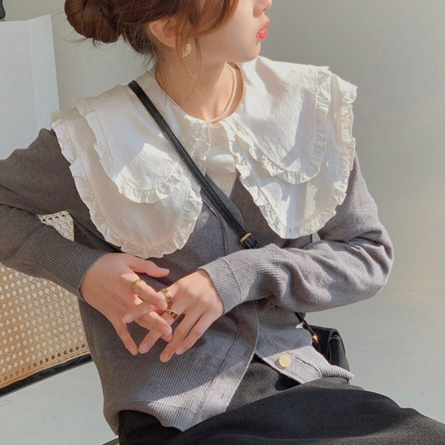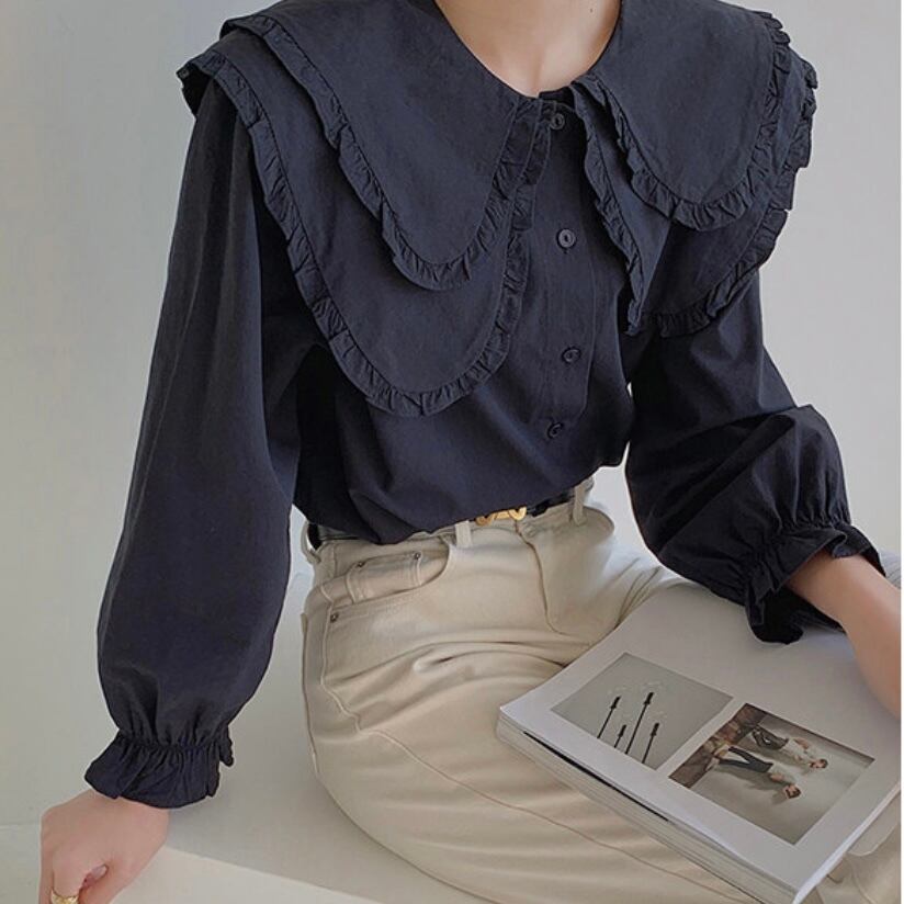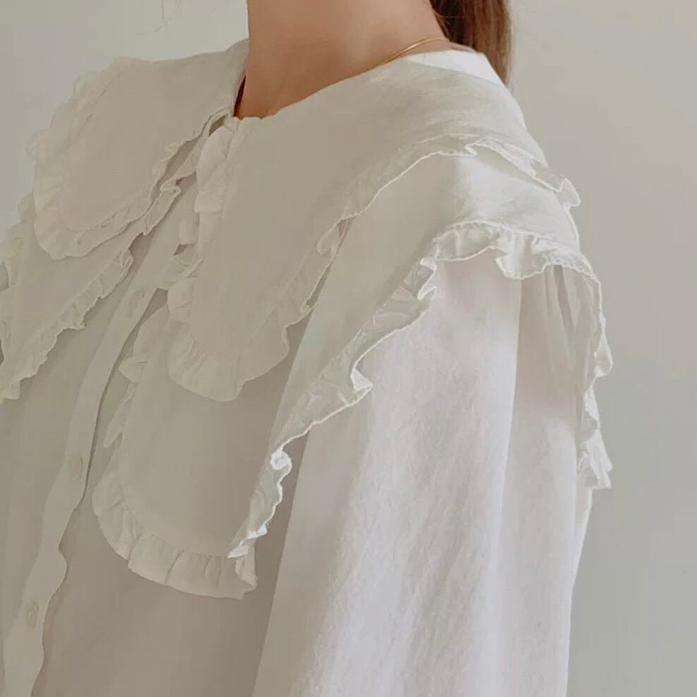 ビッグカラー×フリルが贅沢なブラウス。
