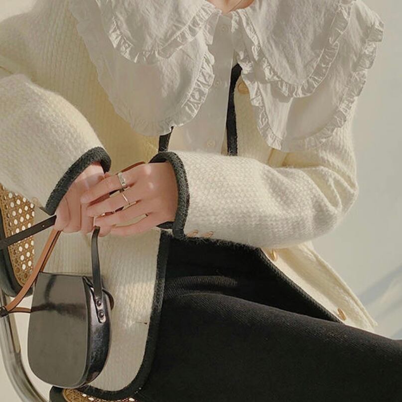 フェイクウールとパイピングにゴールドボタンが上品な印象をプラスしてくれます♪
