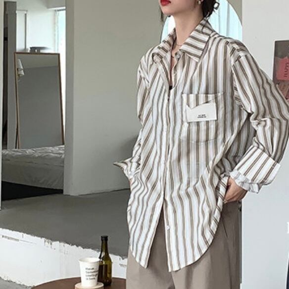 今季トレンドのストライプシャツ。
