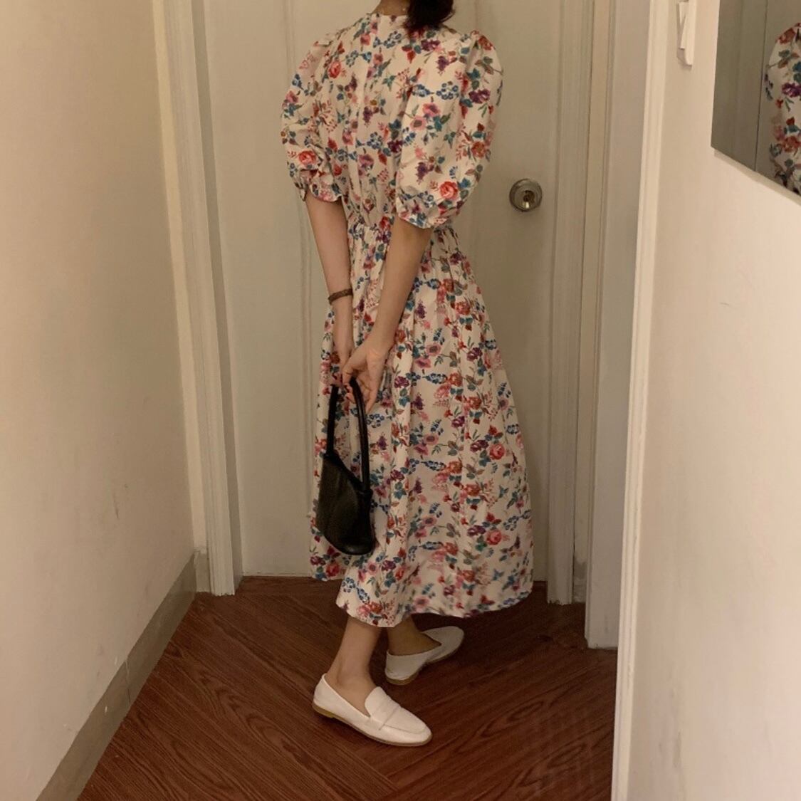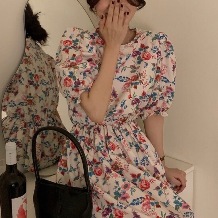 ガーリーなシルエットながらも、配色にこだわった大人のワンピースです。