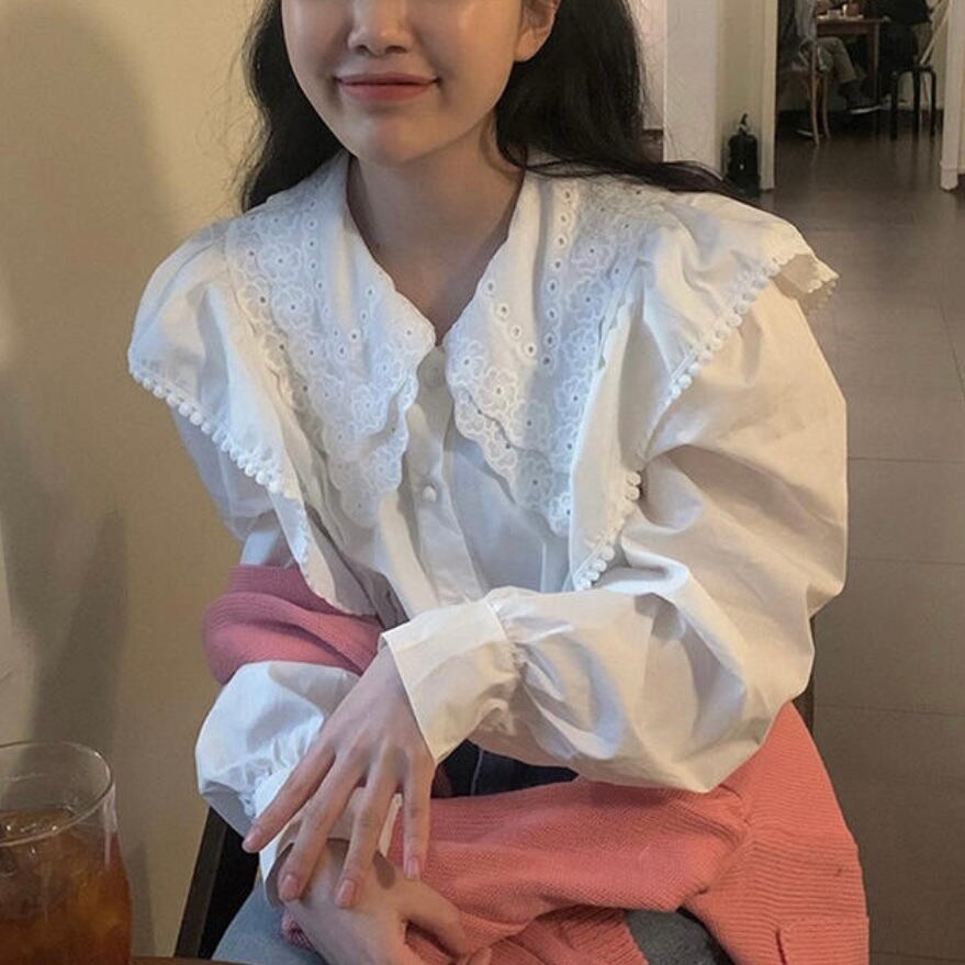 2枚重ねのレースカラーで可愛らしい印象に♪