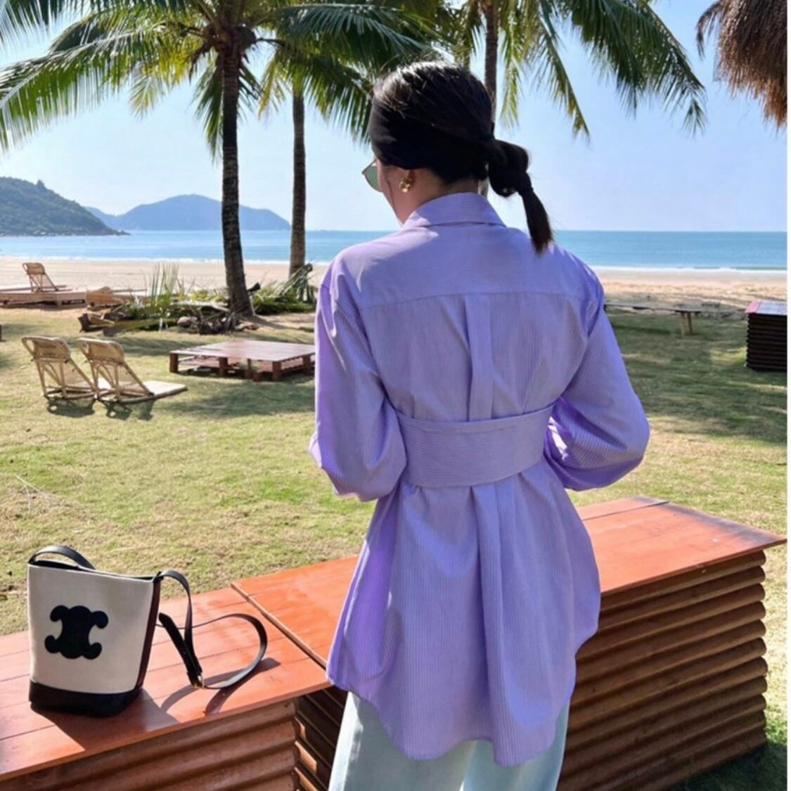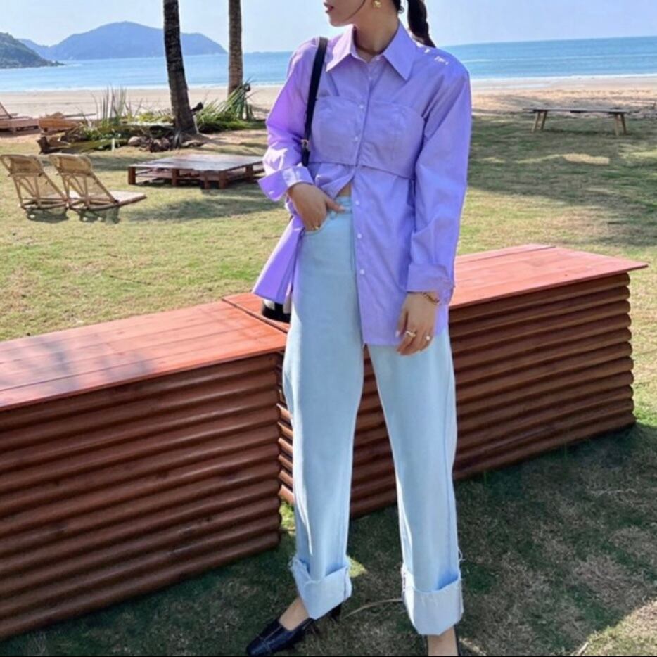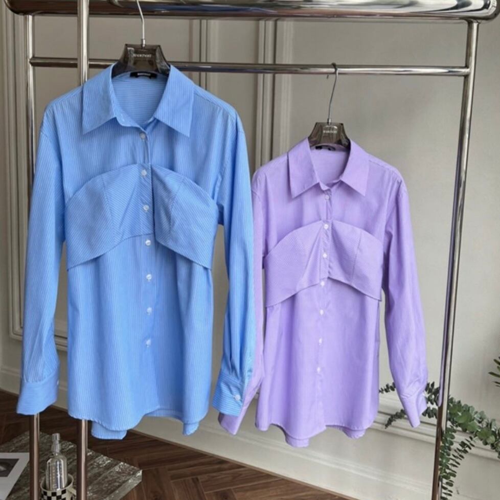 トレンドのストライプシャツをビスチェと合わせることでメリハリが出て一枚でサマになる今季一押しのデザイン♪