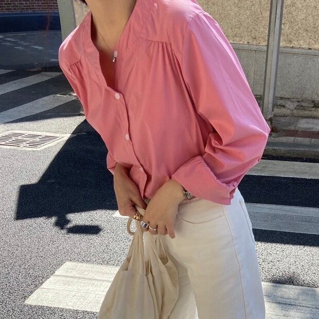 ヨーク部分のギャザーとゆったりめのサイズ感が立体感を作り、カジュアル感と女性らしさを演出◎