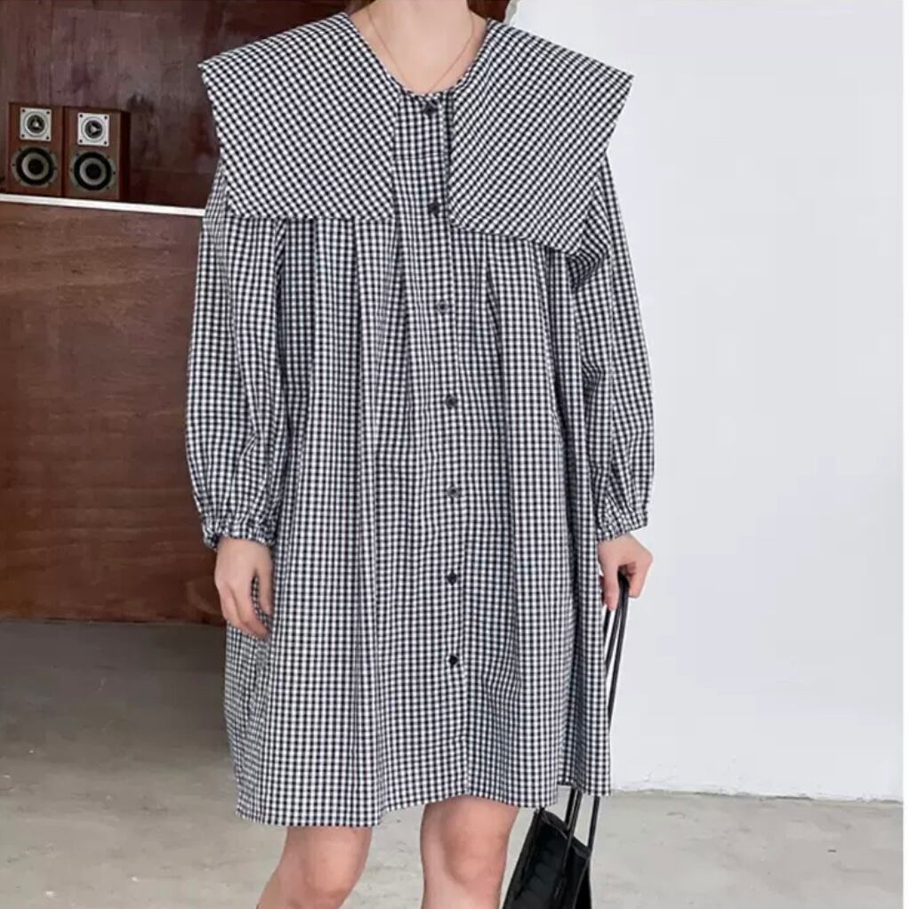 インパクトのある襟元がトレンド感溢れるセーラーカラーワンピース♪