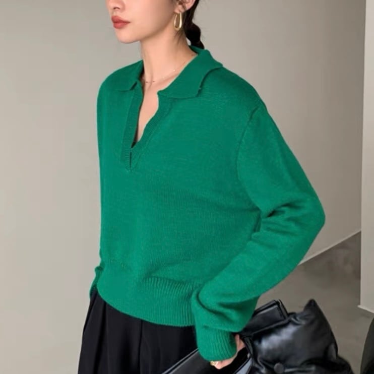 トレンド感たっぷりの襟付きポロネックデザイン。